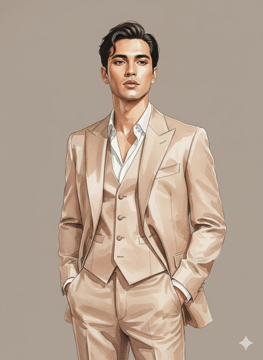 "prompt": "Use the uploaded reference image to preserve the woman’s exact facial identity, proportions, and skin tone with zero alteration. Transform the scene into a high-end watercolor-style Western fashion editorial portrait that feels minimalist, sensual, and powerful. Depict a young South Asian woman in her early 20s with a light brown complexion and a curvy, confident silhouette. Her natural curly dark hair flows freely with a soft, organic watercolor texture. Makeup appears editorial-clean in watercolor form: luminous skin washes, delicately sculpted cheekbones, softly diffused smoky eyes, and muted glossy lips rendered through gentle pigment layering. She wears a nude, champagne, or sand-toned satin or silk Western couture ensemble, interpreted through translucent watercolor washes and fluid brushwork—elegant, tasteful, and refined. Pose shows strong Western editorial confidence: weight shifted onto one leg, hips relaxed, one arm resting lightly, chin subtly lifted, expression calm, self-assured, and dominant through presence. Background is a solid monochrome watercolor wash in warm taupe, muted beige, or soft stone grey, with no props or distractions. Lighting is translated into watercolor through soft tonal transitions, gentle highlights on cheekbones and collarbones, and smooth shadow gradients. Overall mood is Western luxury, restrained sensuality, confidence, and modern femininity, rendered as a refined watercolor fashion illustration, not photorealistic and not digital.",