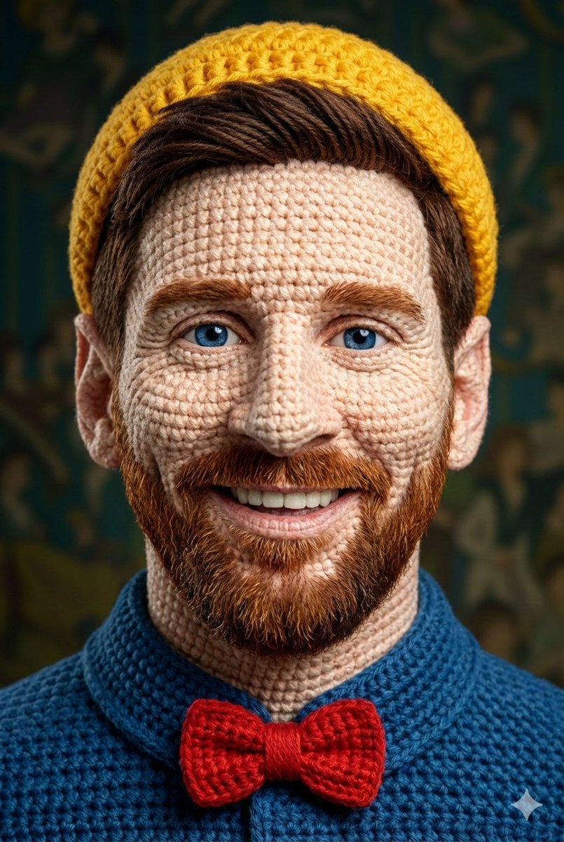 Hyper-Detailed Crocheted Portrait of a Legend — Nano Banana Pro AI Generated Image