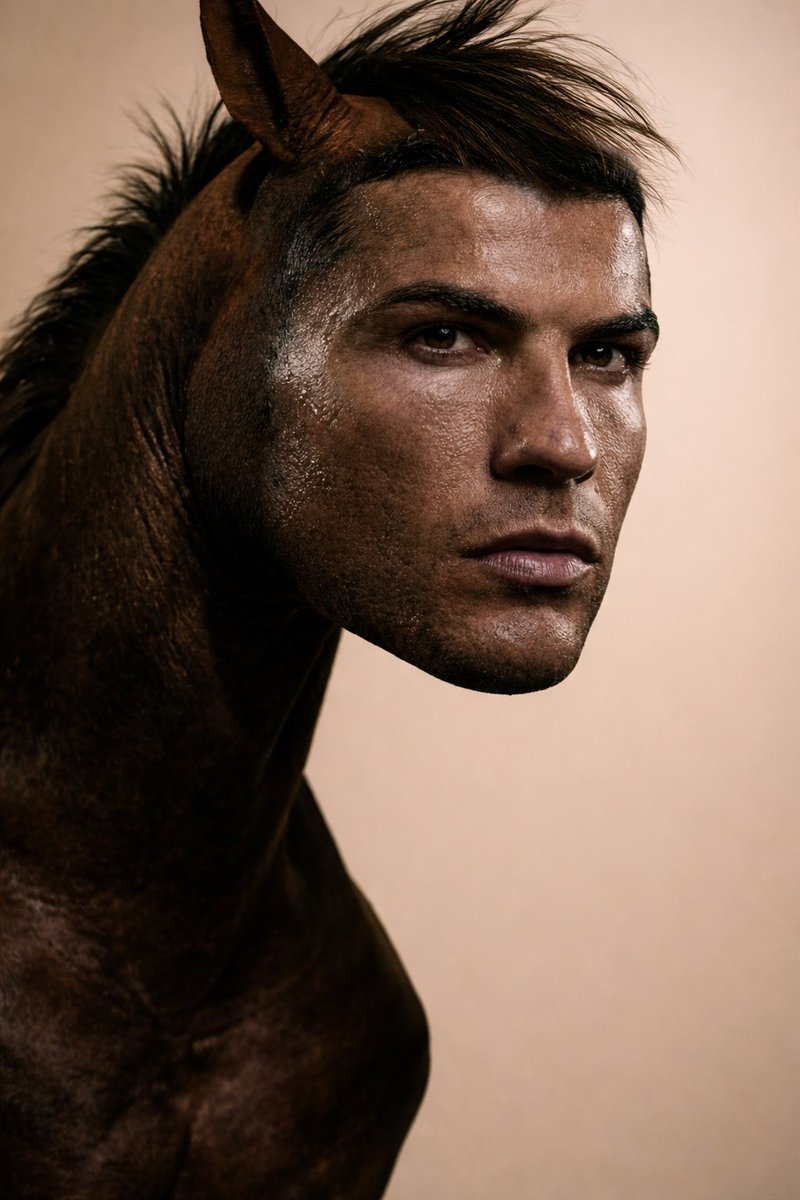 Hybrid Humanoid-Horse Portrait (Ronaldo/Messi inspired) — Nano Banana Pro AI Generated Image