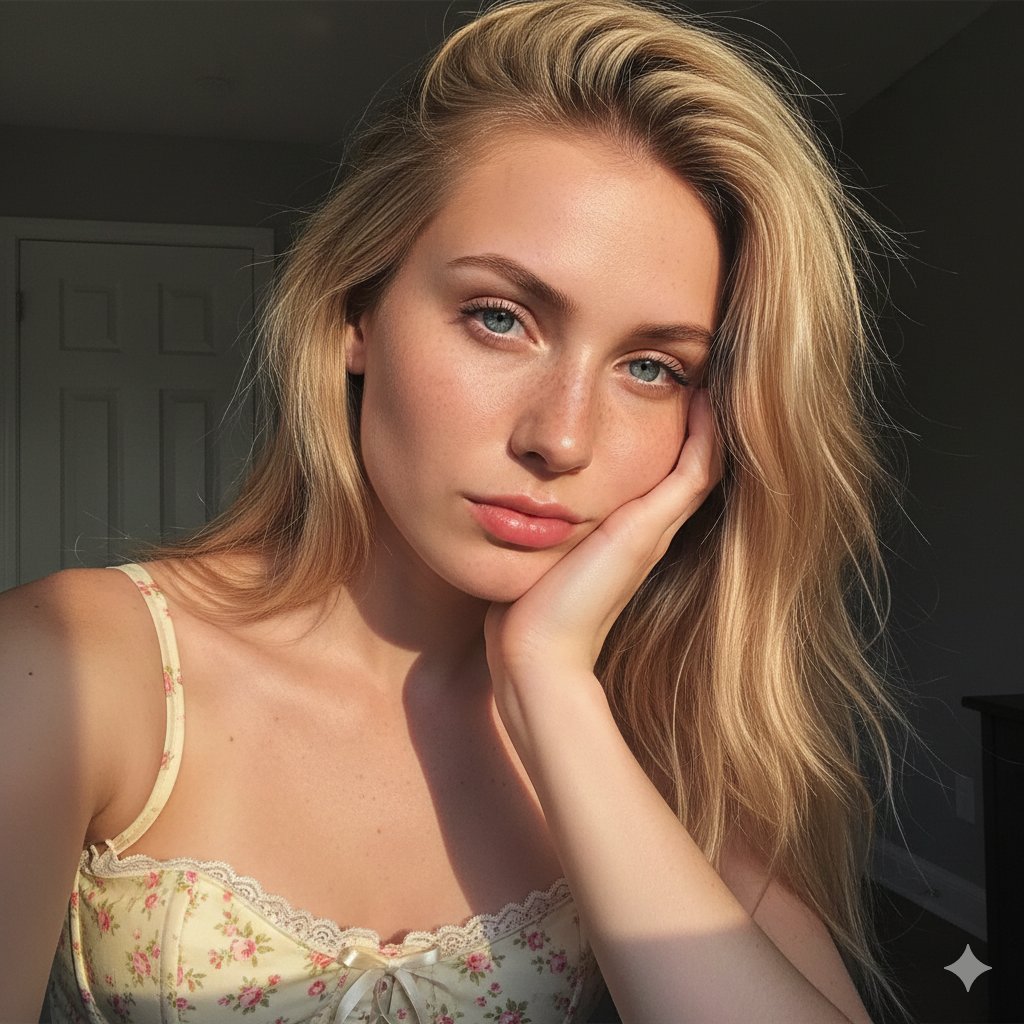 Golden Hour Freckled Portrait Selfie Prompt