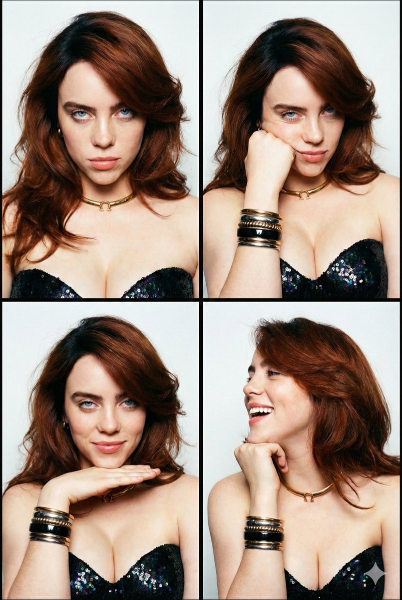 4-Panel Billie Eilish Portrait with Dermatological Realism