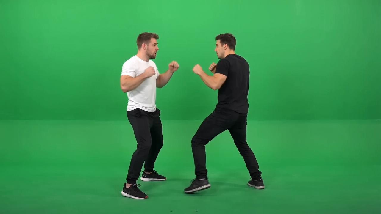 @Audio 1 as the background music. Include fighting sound effects synchronized with the combat actions.