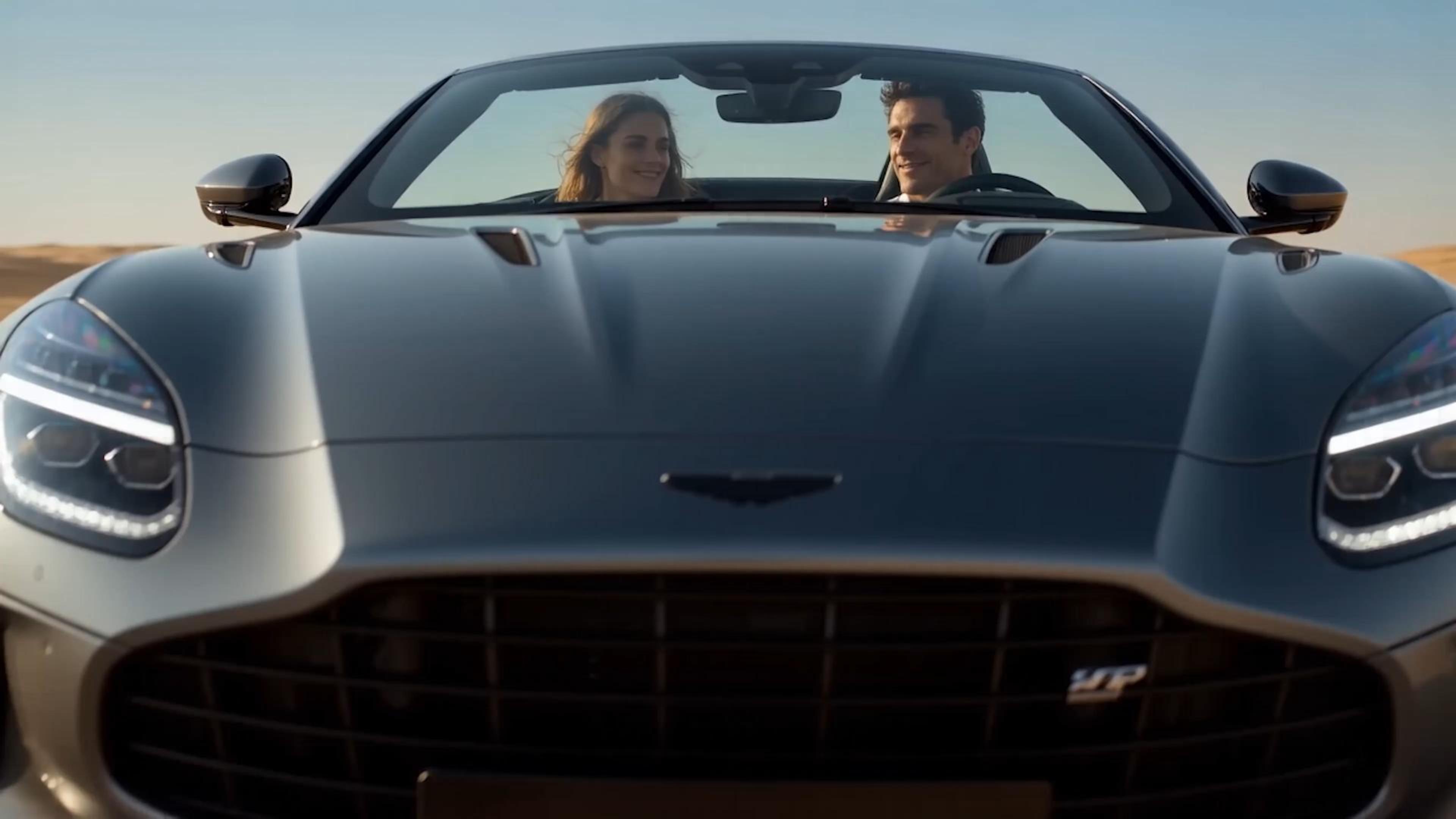 @Video 1 backward, 11-second video, the car drives smoothly to a desert oasis, background music uses
