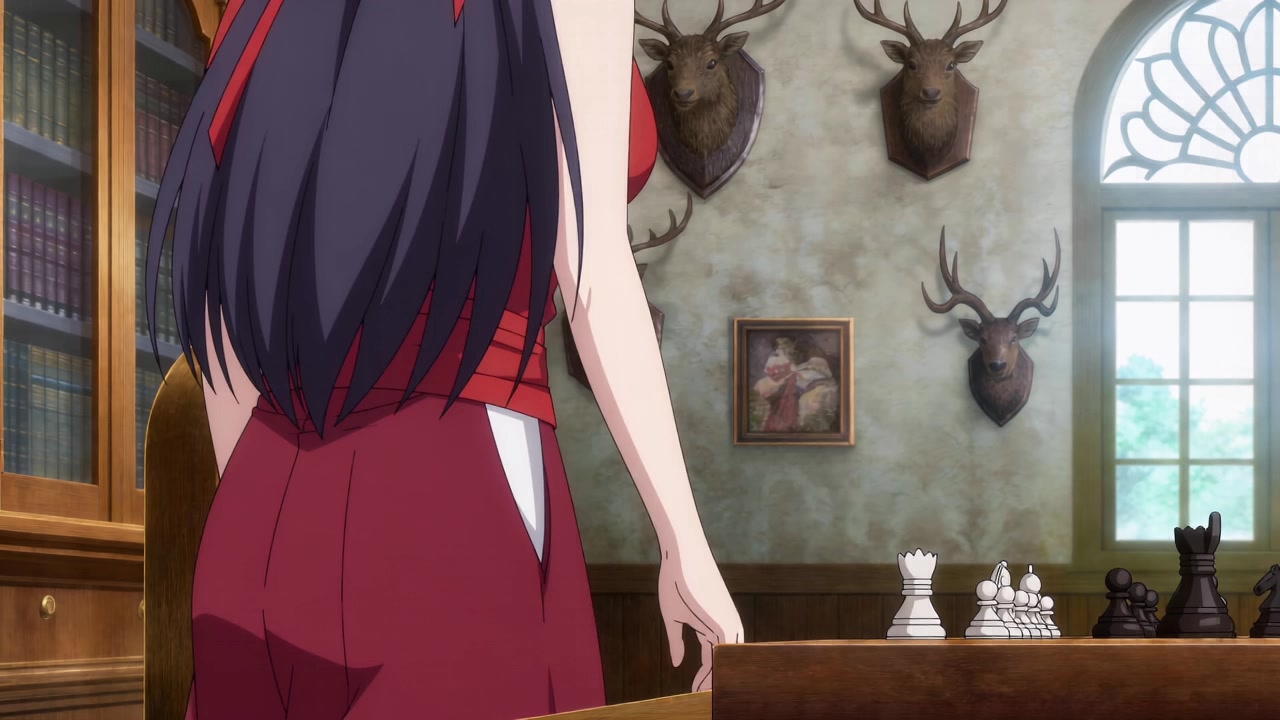 8-second intellectual chess-battle anime clip with a revenge theme. 0-3s: The heroine from