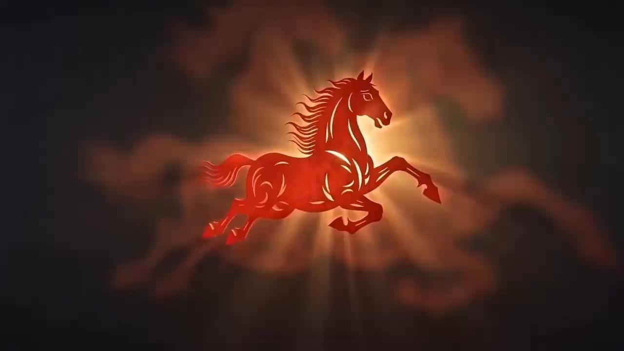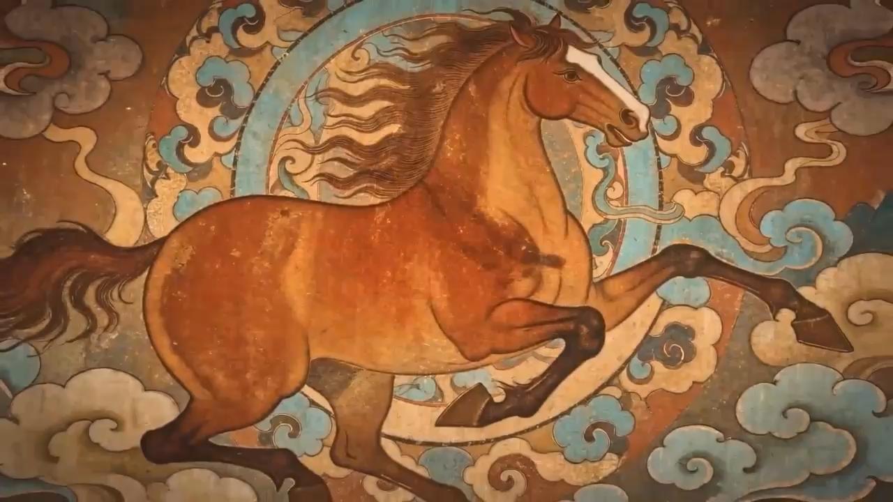 @Video 2 paper-cut imagery fades in with a gradual transition, the mural and paper-cut horse silhouettes perfectly overlap, connecting to
